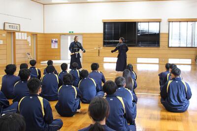 また、武道の精神についても触れられ、衛藤先生から「礼に始まり、感謝の気持ちを込めて終わること」の大切さについてお話がありました。生徒たちは技術面だけでなく、礼節や心構えを学ぶ貴重な機会となりました。