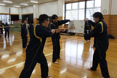 授業に先立ち、前日には国際武道大学制作の動画を用いて「銃剣道」の歴史や競技内容について事前学習を行い、理解を深めました。