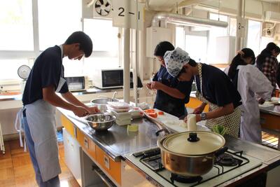 また、普段は使用しない釜と薪を使ってお米を炊くという方法にも挑戦。火加減の調整に苦戦しながらも、協力して炊き上げたごはんは、どのクラスも格別の出来栄えでした。