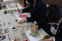 10月19日(火),本校生活技術科の生徒がPFCアドバイザー早坂睦子先生を講師に招き,本校で収穫した農作物を題材にした絵手紙づくりについて学びました。