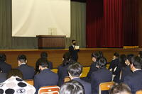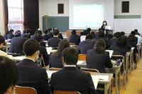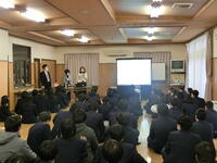 1月20日(木),3年生が講師となり,1年生と2年生に就職や大学・専門学校への進学などの進路体験について話をしました。