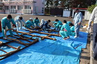 寮の一大イベントである「寮祭」。その準備が10月下旬から本格的にスタートしました。メインとなるのは火文字です。その火文字の縄を編むのは主役の3年生(と現寮生会)の仕事です。初めはぎこちなかった編み方も,徐々に手際が良くなり,火文字のパーツが仕上がるにつれて団結する気持ちも深まります。