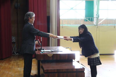 令和6年12月23日(月)、賞状伝達式と休み前集会を行いました。集会後、令和6年10月に行われた韓国の水原(スオン)農生命科学高校との交流について参加生徒から研修の成果について発表がありました。