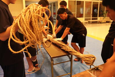今年も当日の成功を目標に3年生を中心に協力しながら縄を編む姿が見られました。