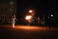 寮の一大イベントである「寮祭」。その準備が10月下旬から本格的にスタートしました。メインとなるのは火文字です。その火文字の縄を編むのは主役の3年生(と現寮生会)の仕事です。初めはぎこちなかった編み方も,徐々に手際が良くなり,火文字のパーツが仕上がるにつれて団結する気持ちも深まります。