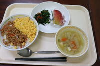 生徒が食堂に入り、リンゴを目にすると「これは加美農の?」と必ず聞いてきます。「そうだよー。」と答えると「やっぱりねー。美味しいからね。」と得意気な顔をします。四季を通じてリンゴが育つ風景を味わいながら実りの秋に頂けることは幸せなことですね。