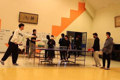 寮内の中央には天井の高いホールがあります。しばらくの間はそのホールでお喋りをしたり,座ってテレビを観たりと過ごしていました。今年に入り,いよいよ室内スポーツが復活しました。こちらも3年ぶりとなります。賑やかさが戻ってきて,学年を越えた交流もますます活発になりました。