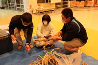寮の一大イベントである「寮祭」。その準備が10月下旬から本格的にスタートしました。メインとなるのは火文字です。その火文字の縄を編むのは主役の3年生(と現寮生会)の仕事です。初めはぎこちなかった編み方も,徐々に手際が良くなり,火文字のパーツが仕上がるにつれて団結する気持ちも深まります。