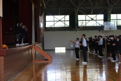令和5年10月2日(月)、全国大会激励会を行いました。相撲部は、かごしま国体に、農業クラブは平板測量競技会、家畜審査競技会、農業鑑定競技会に出場します。応援よろしくお願いします。