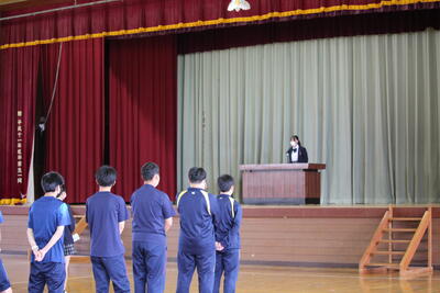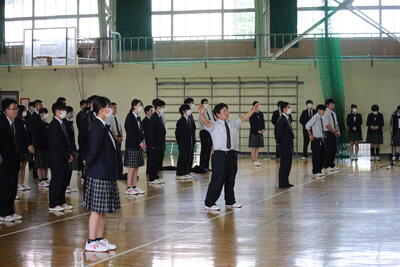 令和5年5月25日(木)、地区総体報告会では各部から大会成績について報告がありました。その後、県総体に出場する団体の壮行式を行いました。各部のあいさつの後、全校生徒でエールを送りました。
