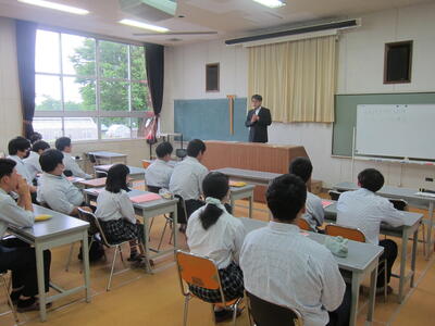 令和5年6月15日(木)、2学年は6月29日~30日のインターンシップに向けてインターンシップ出陣式を行いました。当日、代表生徒が決意表明をし、校長先生から激励のあいさつをもらいました。