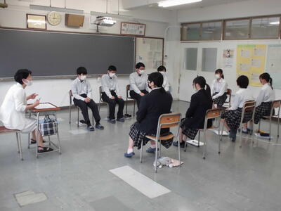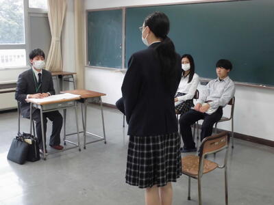 令和5年6月15日(木)、3年生を対象に進路別面接講習会を行いました。この講習では希望進路別に、模擬面接を体験し、面接試験について学びました。