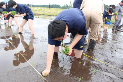 令和5年5月19日(金)、全校田植えを行いました。各クラス、オリジナルのTシャツを身に付け、全校生徒と職員で一致団結して田植えを行いました。また、田植えのきれいさやクラスのまとまりを審査した結果、3年3組が優勝しました。
