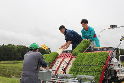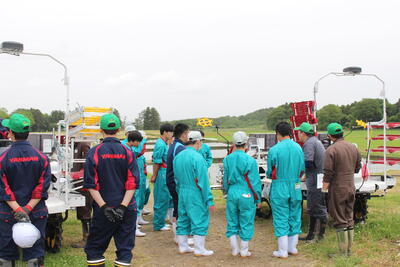 令和5年5月23日(火)、株式会社宮城ヤンマー商会の全面協力のもと本校農業機械科の生徒が田植え機の仕組みについて話を聞き、田植え機での田植え体験をしました。
