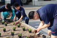 花壇植栽が実施されました。加美町の中新田体育館前の花壇に、加美農で育てたベゴニア等の苗を管理委員の寮生と草花専攻の生徒、相撲部員で植えました。加美ロータリークラブの指導の下、約450株が植えられ、明るい花壇になりました。機会がありましたら、是非ご覧下さい。