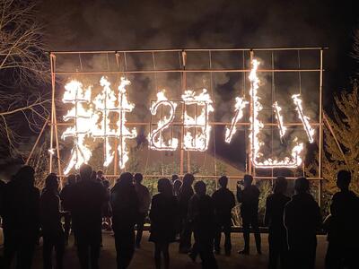 毎年、寮祭では“耕心”の文字を夜空に浮かばせます。