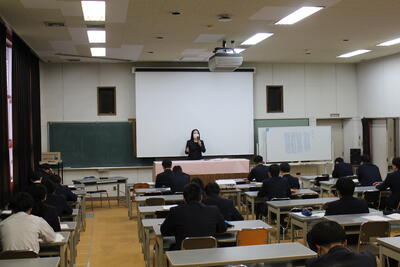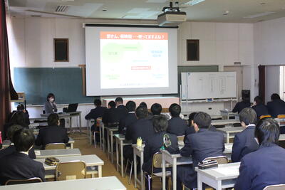 令和5年12月7日(木)、1年生を対象に年金セミナーを行いました。日本年金機構の方を講師に迎え、年金の仕組みなどについて学びました。