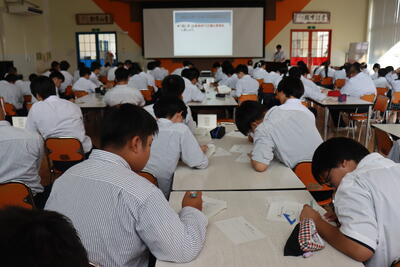 寮生たちはメモをとりながら真剣に講話を聞いていました。
