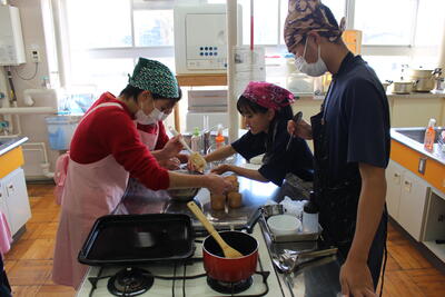令和5年11月14日(火)、色麻町ヘルスメイトの方を講師に迎え、本校農業科果樹専攻生を対象にリンゴ狩りと本校のリンゴを使った調理実習を行いました。