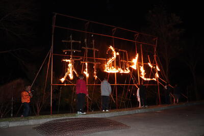 今年の寮祭テーマは「青春の1ページを!」でした。そのテーマにふさわしい寮祭を!と3年生が伝統の火文字用の縄を作り、下級生が連日にわたり企画会議を行いました。沢山のアイディアの中から、今回は豪華景品付きのビンゴとなりました。さらに、新企画として、寮生活や寮生の助けとなる善い行い(善行)をした生徒を称える表彰や個別学習の表彰も重ねて行いました。(これが非常に盛り上がる・・)顔一杯に嬉しさが溢れている生徒もおりました。