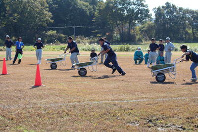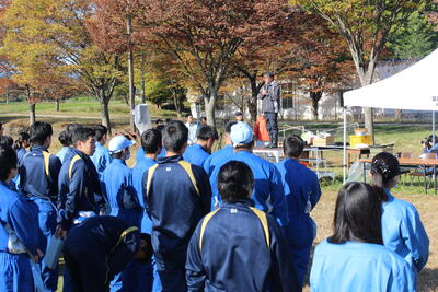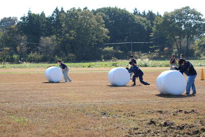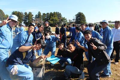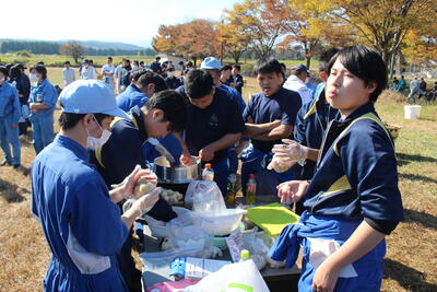 令和5年11月1日(水)、収穫感謝の会を行いました。当日は天気にも恵まれ、青空のもとクラスごとに豚汁と羽釜でご飯をつくり、みんなで楽しく食事をしました。レクリエーションでは農業高校ならではの競技としてクラス対抗のロール転がしリレー、一輪車の運搬リレー、全校生徒が参加するクイズ大会などもあり大変盛り上がりました。