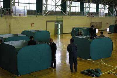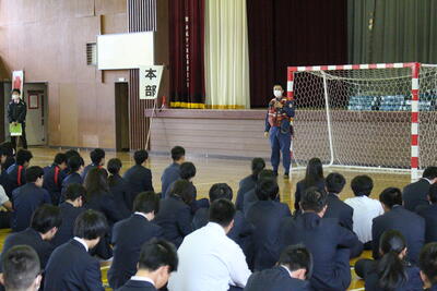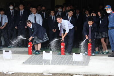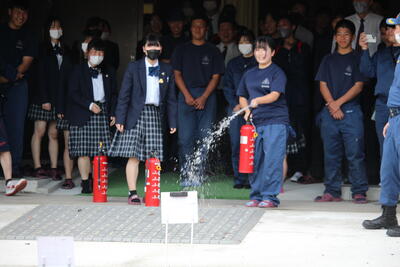 令和5年11月7日(火)、加美消防署の方を講師に迎え、防災教室Ⅱを行いました。今回は火災を想定した避難訓練、水消化器を使った消火訓練をしました。さらに、1年生は避難所のパーテーションの設置に取り組みました。