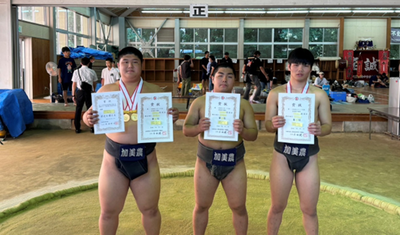 令和6年6月15日(土)、栗原市栗駒武道館を会場に開催された国民スポーツ大会相撲競技宮城県予選会において本校生徒が上位独占を果たしました。また、成年選手全員が出場する宮城県選手権において本校生徒も出場し、快進撃を続け決勝戦では師弟対決を制し、高校生ながら個人優勝を果たしました。高校生が優勝するのは大会史上3人目で、加美農生が優勝するのは初めての快挙となりました。