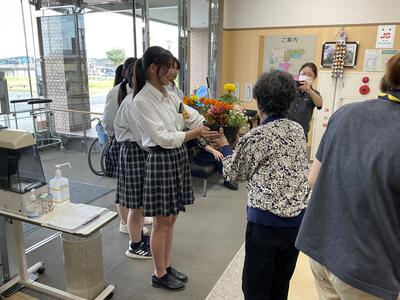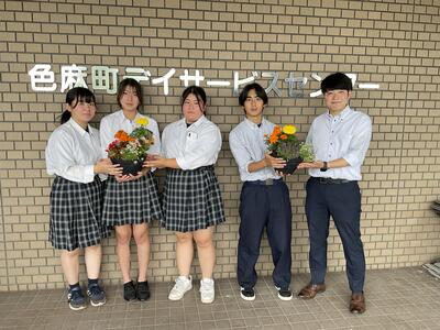 令和6年6月24日(月)、本校家庭クラブ員が色麻町デイサービスを訪問し、草花の寄せ植えプランターを寄贈しました。