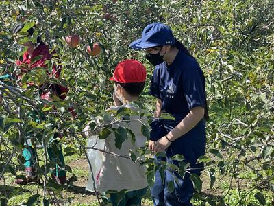 令和5年10月18日(水)、大崎市立古川第三小学校の児童が本校の牛舎見学や果樹園でのリンゴ狩りを行いました。最初に、牛舎では本校農業科畜産専攻生が先生となり、牛についての説明を行い、実際に牛とふれあいました。その後、果樹園に移動し、本校生活技術科果樹専攻生が先生となり、リンゴの特徴や収穫の仕方について説明をし、リンゴ狩りを行いました。