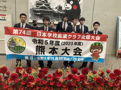 令和5年10月25日(水)から26日(木)にかけて行われた第74回日本学校農業クラブ全国大会令和5年度熊本大会に出場した生徒達が,全校生徒に報告をしました。この大会には3種目に7名の本校生徒が出場しました。家畜審査競技会乳用牛の部に東北ブロック代表で出場した本校農業科3年小川恵大君が優秀賞に入賞しました。