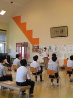 「入試をおもいだしました・・・」と話をする一年生。気持ちを新たに頑張りましょう!
