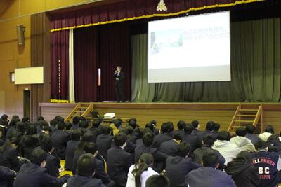 続いての集会では、校長先生より「自己有用感を持ち、挑戦を続けるために」というテーマでお話がありました。自分の存在が誰かの役に立っているという実感が、次の一歩を踏み出す力になること。そして、失敗を恐れず挑戦し続けることの大切さについて、生徒たちは真剣な表情で耳を傾けていました。