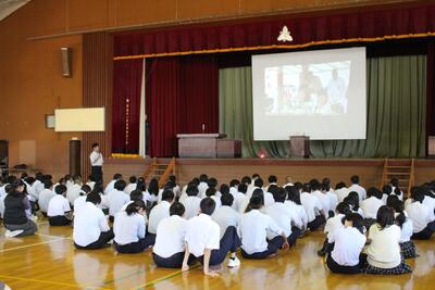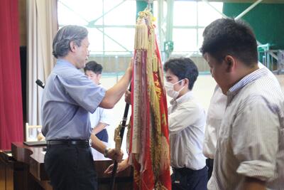 また、8月のインターハイに出場する相撲部選手たちが全国大会への意気込みを語りました。集会に参加した生徒全員が、力強い拍手で選手たちを応援しました。