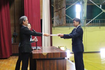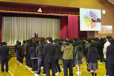 1月8日(木)、本校では賞状伝達式と冬休み明け集会を行いました。校長先生からは新年のご挨拶とともに、新たな気持ちで一年をスタートさせる大切さについてのお話がありました。生徒たちは冬休みから気持ちを切り替え、真剣な表情で話に耳を傾けていました。 また、賞状伝達式では、各分野で優れた成果を収めた生徒たちが表彰され、全校でその努力を称えました。新しい年の始まりにふさわしい、引き締まった雰囲気の中での集会となりました。