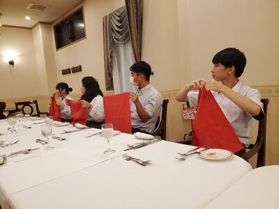 9月2日(火)、生活技術科の3年生が食品の授業の一環として、ラ・クラージュ(LA COURAGE)様のご協力のもと、テーブルマナー講習を受けました。生徒たちは、普段なかなか体験することのない本格的なコース料理に触れ、目を輝かせながら一品一品を味わっていました。ナイフやフォークの使い方、料理の順序、食事中の所作など、実際の体験を通して学ぶことで、マナーの大切さを実感できました。