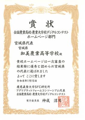 「全国農業高校・農業大学校デジタルコンテスト ホームページ部門」で宮城県代表に選ばれました。
