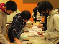 先輩へ感謝の気持ちを形として自由時間・・ではなく学習時間を削り,寄せ書きや諸々の準備を行っています。普段何気に無口なK君。友達と交わる時はこんな顔もするのだなぁと私が驚いたくらい本当に楽しそうに進めていました。今年は「耕心」一色のプレゼントとなりました。