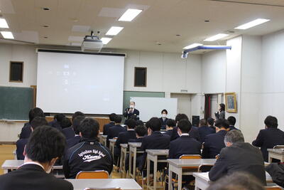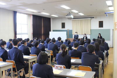 12月8日(木),3年生を対象に入社準備セミナーを行いました。株式会社スリーデイズの方を講師に迎え,4から社会人になるために必要なビジネスマナー,コミュニケーション,お金の管理などについて学びました。