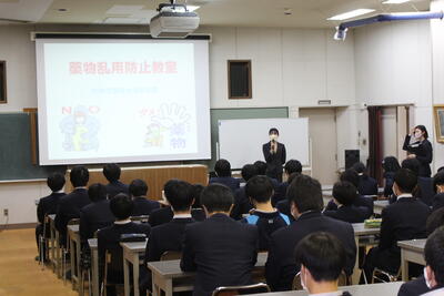 12月8日(木),3年生を対象に薬物乱用防止教室を行いました。加美警察署の方を講師に迎え,麻薬などの薬物の危険性や依存性,健康への影響などについて学びました。