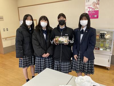 12月22日(木),生活技術科の生徒がボランティア活動を行いました。色麻町社会福祉協議会と連携し,1人暮らしの高齢者宅へお弁当を配達するという内容でした。昨年度に引き続き,今回のお弁当も献立やお弁当ラベルシールは生徒が考案し,加美農業高校が提供した食材を使用して製造したものです。生徒は地域の方々が笑顔になるようにと思いながら活動していました。