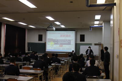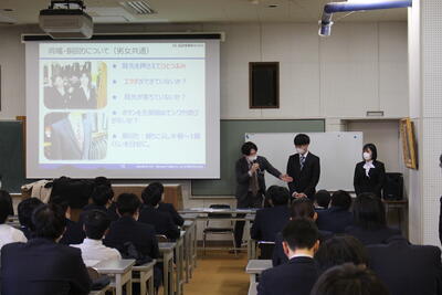 1月19日(木),3年生を対象にスーツの着こなしセミナーを行いました。はるやま商事株式会社の方を講師に迎え,スーツの着こなしについて学びました。
