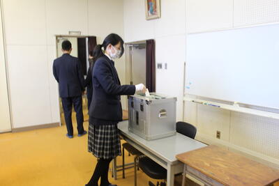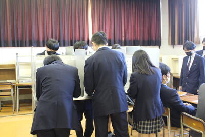 1月16日(月),2年生を対象に選挙講座を行いました。宮城県選挙管理委員会の方を講師に迎え,選挙の仕組みなどについて学び,模擬投票を体験しました。