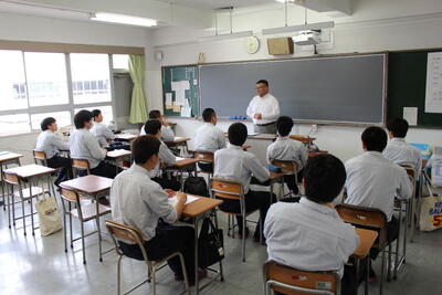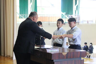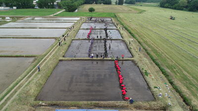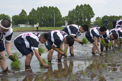 令和6年5月24日(金)、全校田植えを行いました。各クラス、オリジナルのTシャツを身に付け、全校生徒と職員で一致団結して田植えを行いました。また、田植えのきれいさやクラスのまとまりを審査した結果、2年1組が優勝しました。