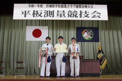 令和6年6月25日(火)、宮城県学校農業クラブ連盟平板測量競技会県大会が本校で行われました。本校からは農業機械科3年生のチーム3名が出場しました。本校は4年連続で最優秀賞を獲得し、8月の東北大会、10月の全国大会への出場を決めました。