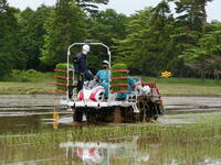 最新の全自動田植え機にびっくり。きれいな田植えができました。