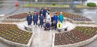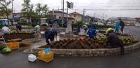 地域に花を届けよう。中新田体育館前の花壇に花を植えました。