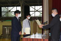 5月18日(木),地区総体報告会および県総体壮行式を行いました。本校からはバレーボール部,バスケットボール部,卓球部,陸上競技部,テニス部,サッカー部,柔道部,剣道部から大会成績の報告と,県総体への意気込みについて話しがありました。最後に,本校応援団よりエールをもらい,県総体に向けて気持ちを高めていました。