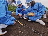 5月31日(月),農業科1年生が大豆100粒運動に参加しました。これはダイズ栽培を通じて食の大切さを学ぶ全国的な取り組みです。亘理町のマルト食品(株)社長の藤原竜二さんからダイズに関するお話を聞きました。その後,一緒に種まきを行いました。秋にはダイズの収穫と豆腐づくりをします。