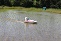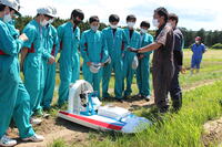 5月31日(月), 株式会社宮城ヤンマー商会の全面的な協力のもとに本校農業機械科と農業科の生徒が除草剤散布機の運転を体験しました。ボート形の機械は田んぼの中をすいすいと進み薬剤をまくことから,生徒達も驚いていました。