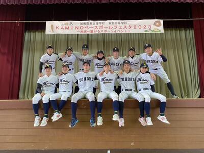 当日は合同練習などで交流がある東北高校野球部も参加し,60人ほどの子どもたちといっしょにキャッチボールや打撃練習を楽しく行いました。